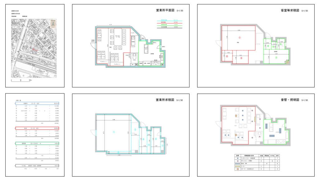 風営法許可申請・深夜営業届出・民泊届出など、行政書士業務に関する図面に限ります。